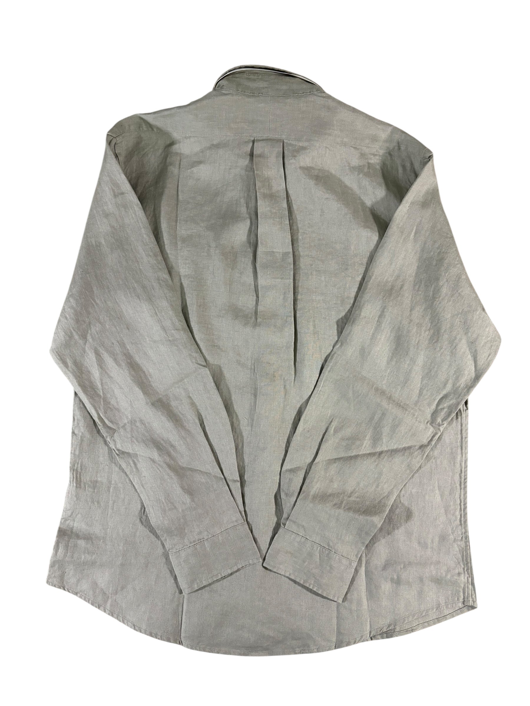 Camisa gris de lino, manga larga con botones con logo del jinete a caballo de Ralph Lauren.