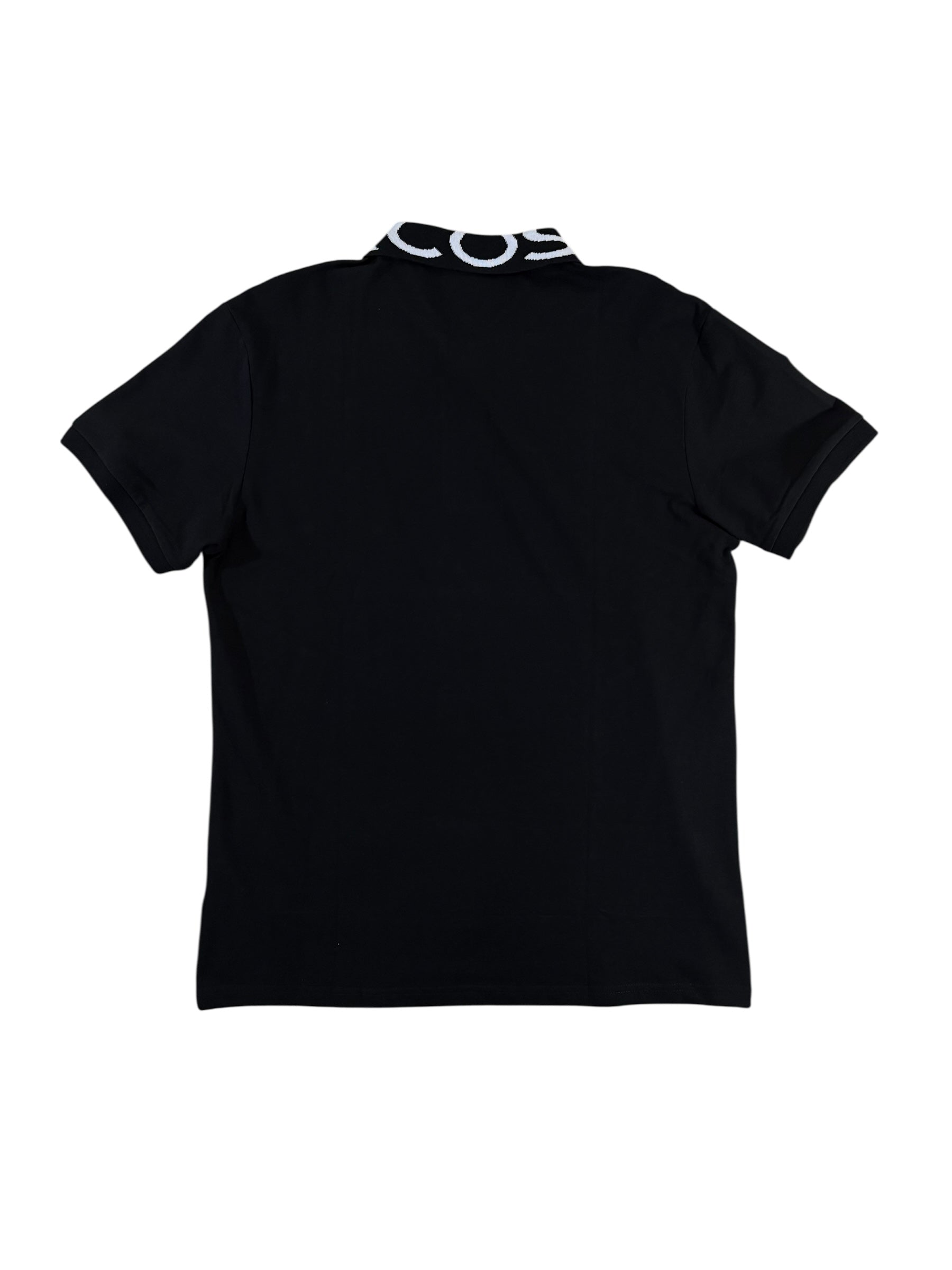 Playera tipo polo color negro con estampado de Lacoste en el cuello, confeccionado en piqué de algodón.